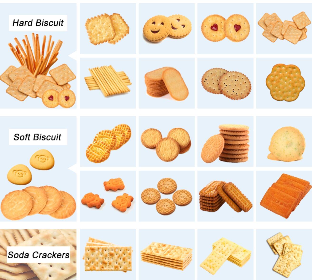 Gotowe twardые i miękkie ciastka wyprodukowane przy użyciu linii produkcyjnej do wytwarzania ciastek: